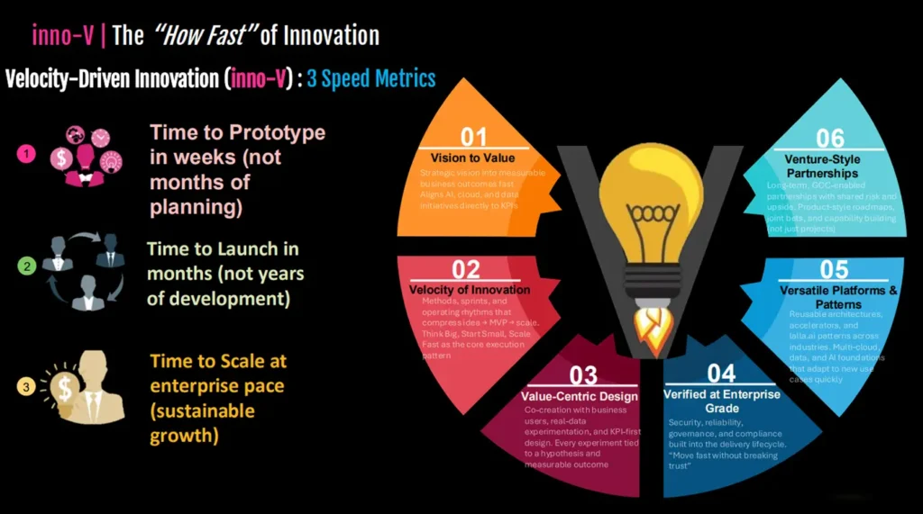 By combining Vision to Value, Velocity of Innovation, Value Centric Design, Verified at Enterprise Grade, Versatile Platforms & Patterns, and Venture Style Partnerships, INNO V gives industry leaders a repeatable way to scale AI and digital capabilities with the speed of a startup and the discipline of a mature enterprise.